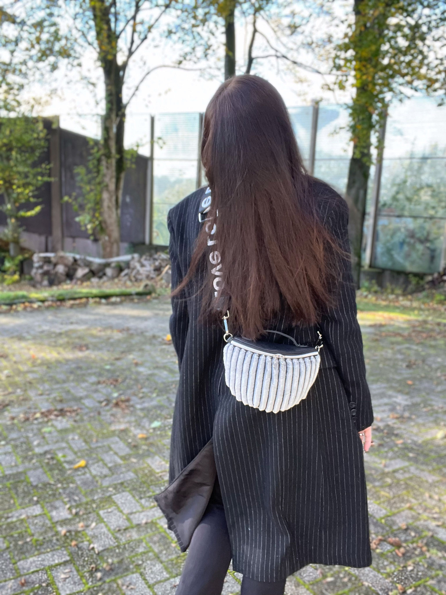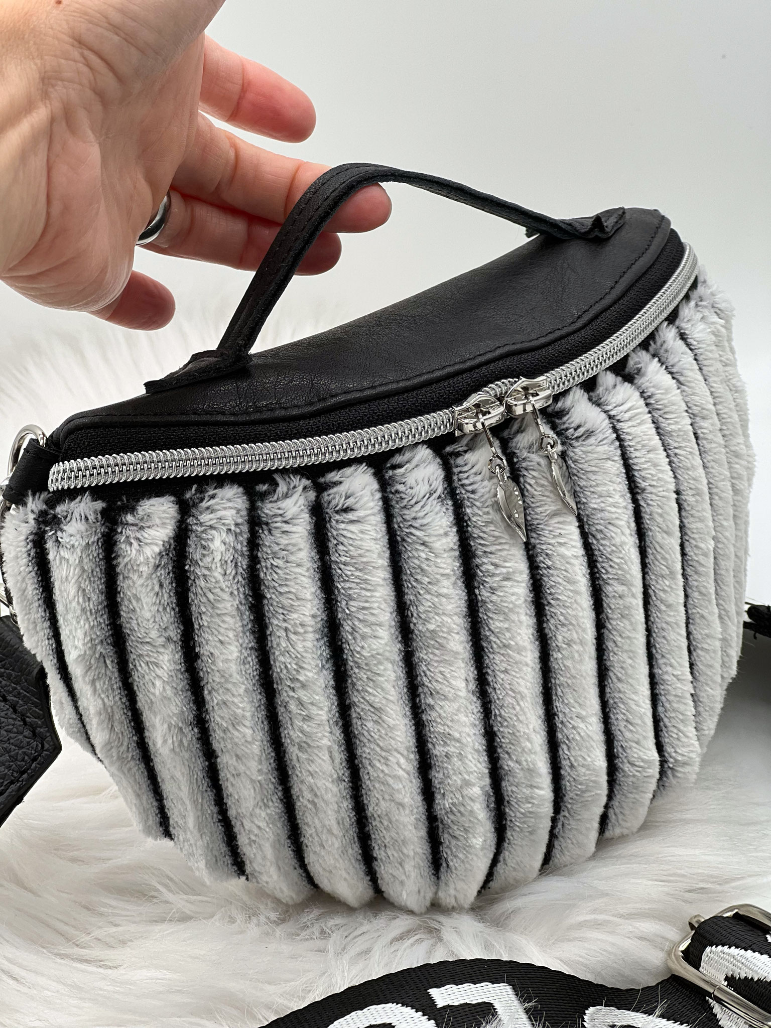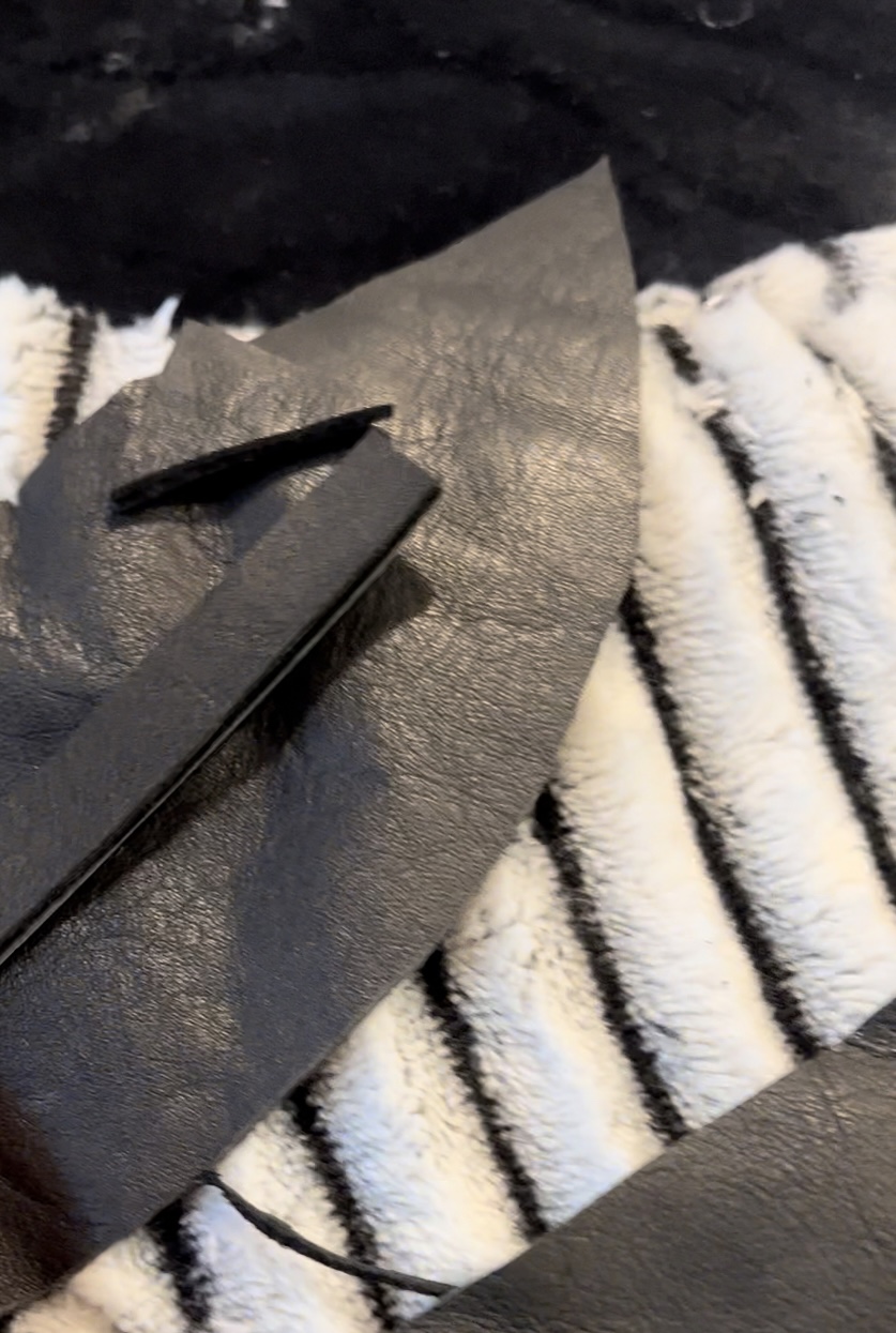wurde aus einer Echtlederjacke und dem Stoff einer neuen flauschigen Decke gefertigt.
