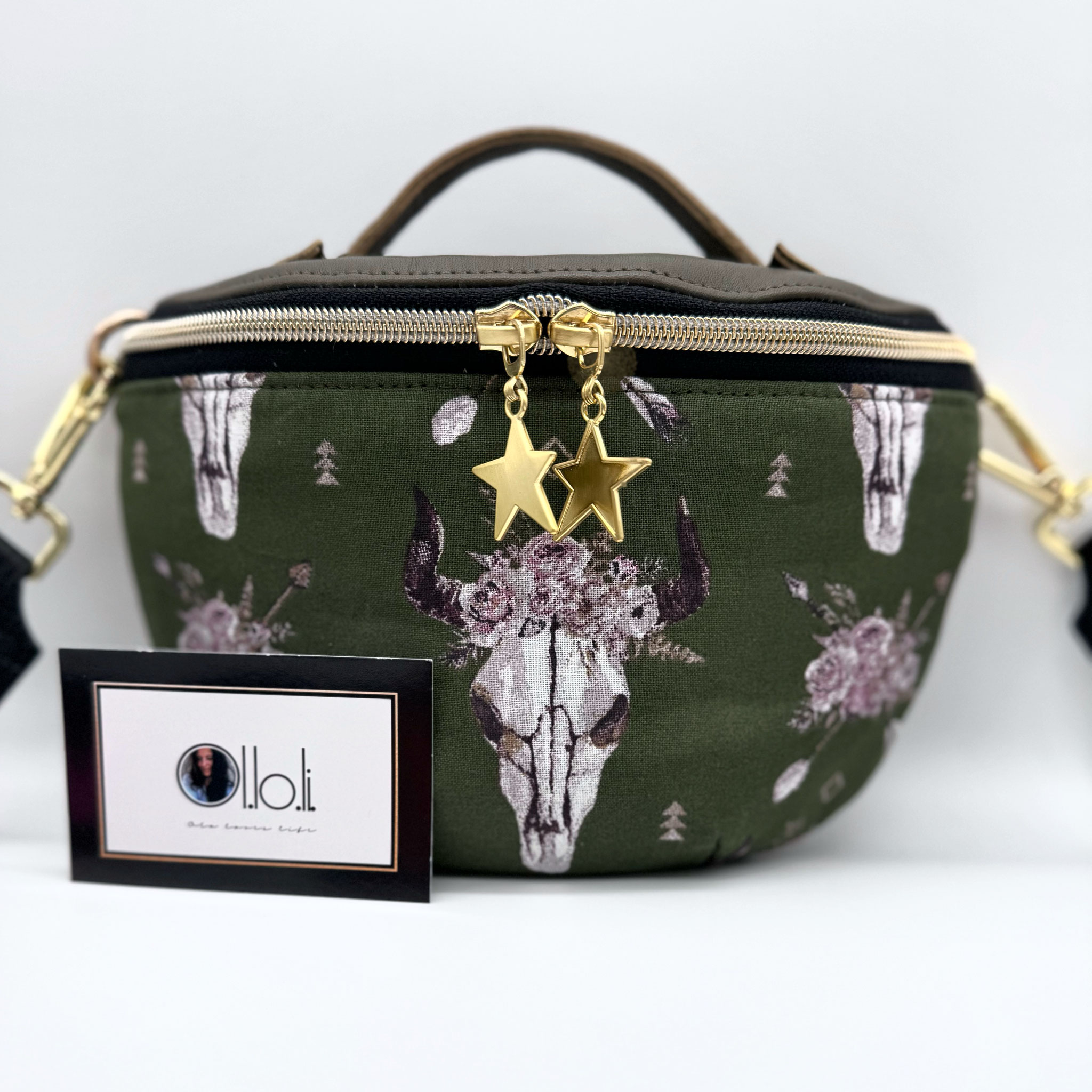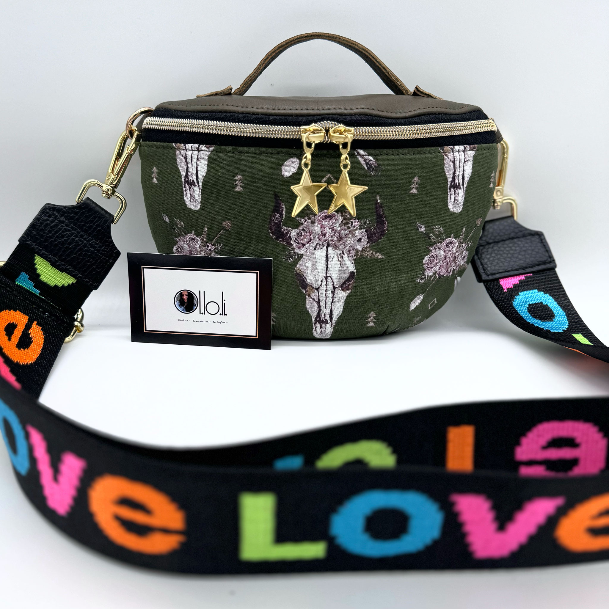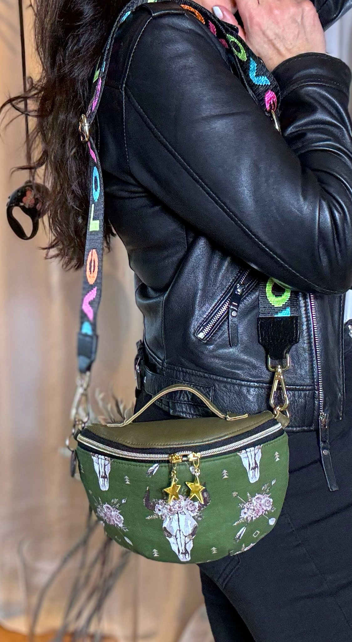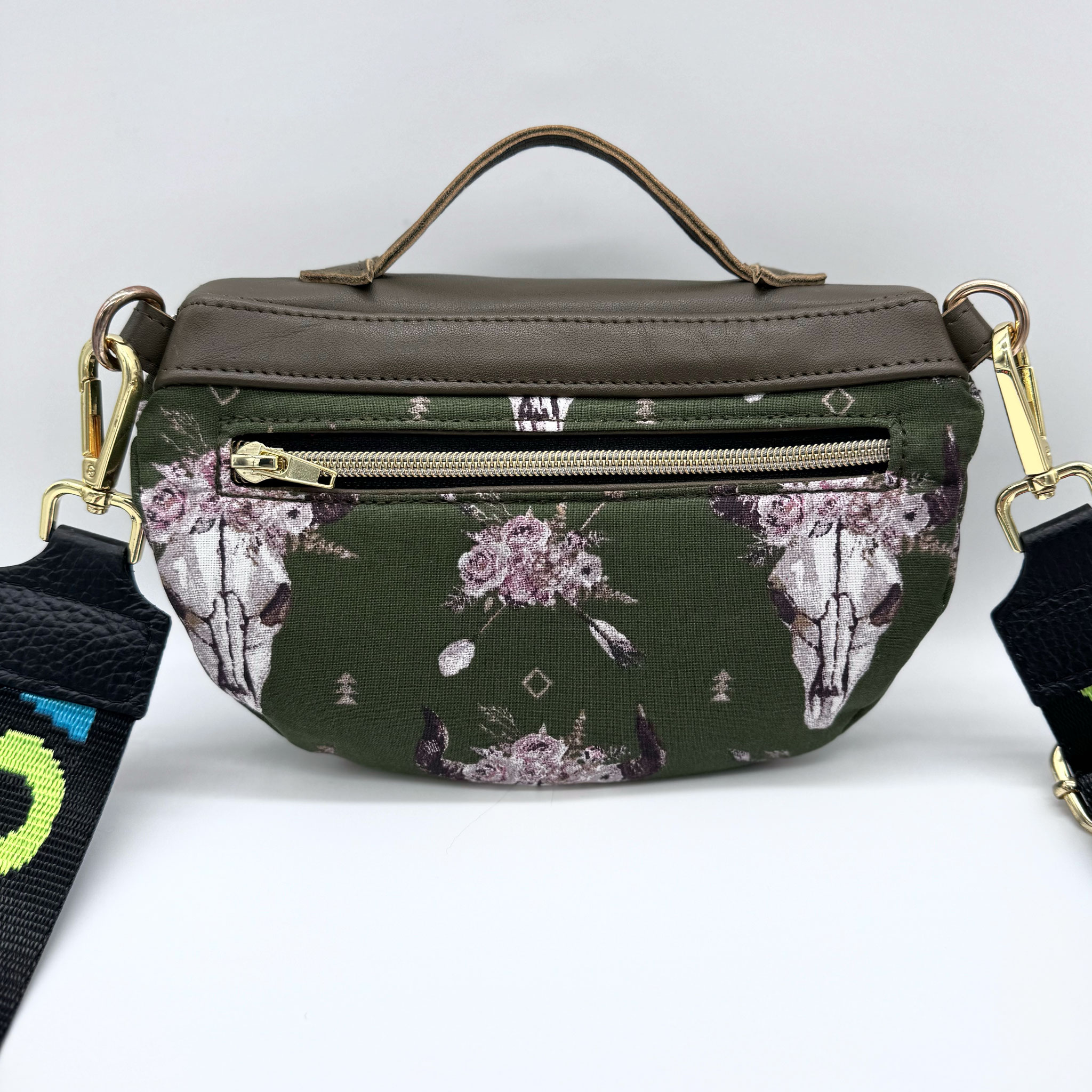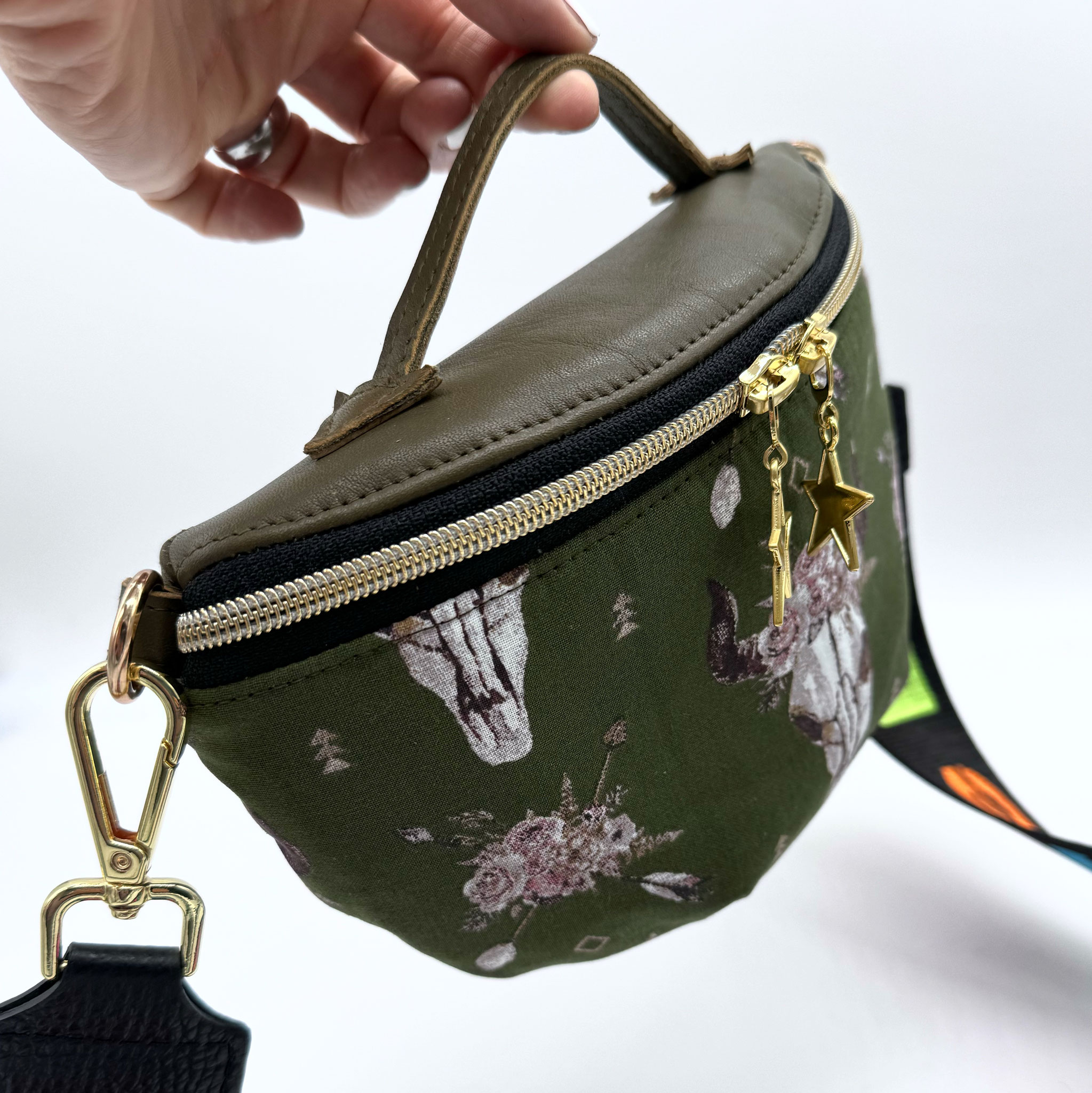 wurde aus einem Echtlederrest und aus einem Stoffrest gefertigt.