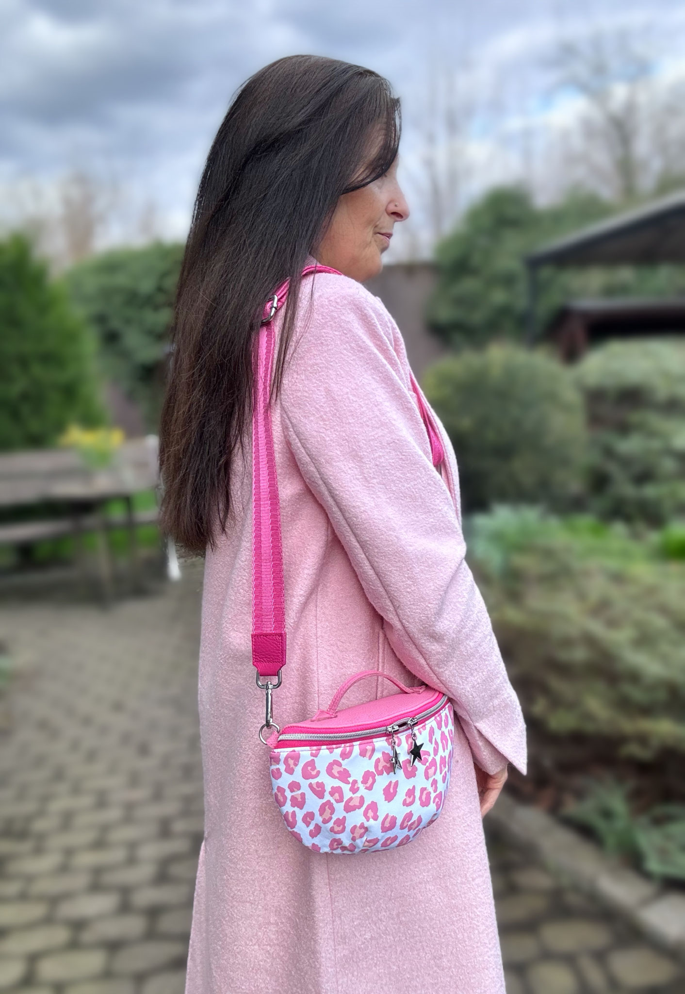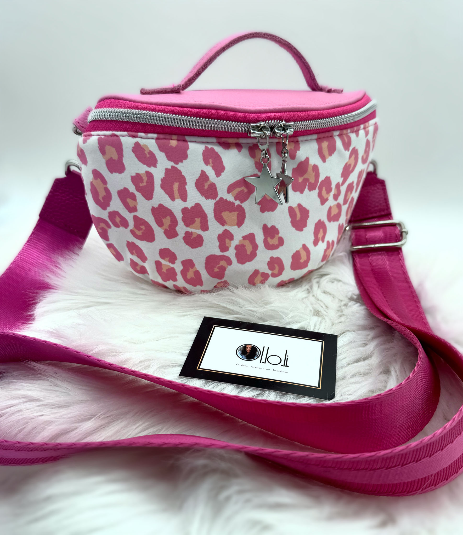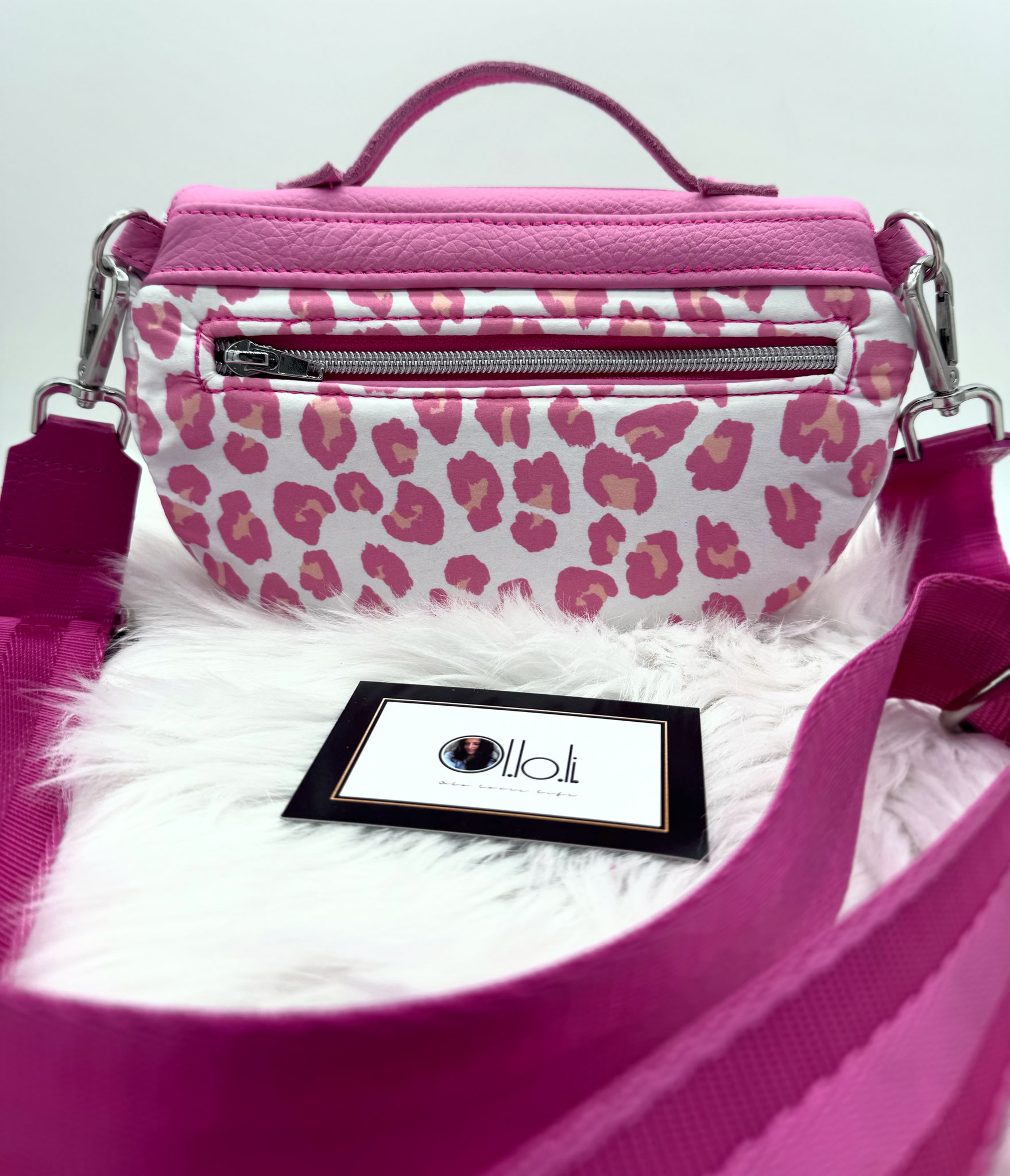 Sie verfügtjeweils innen und außen über ein Reißverschlussfach.
