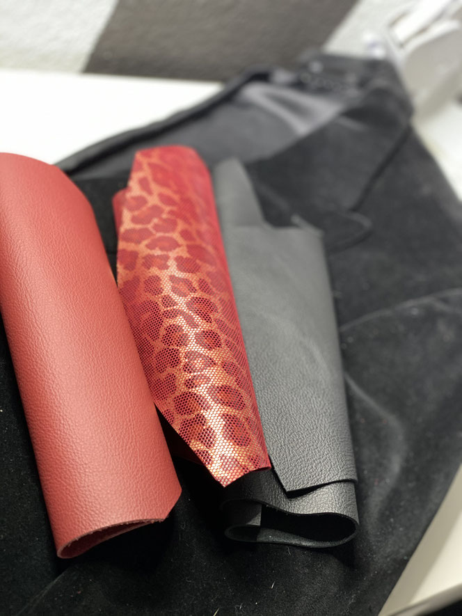 DIESE DAWIDA ENTSTAND AUS ECHTLEDER UND EINEM SAMTSAKKO FÜR DIE INNENAUSSTATTUNG.