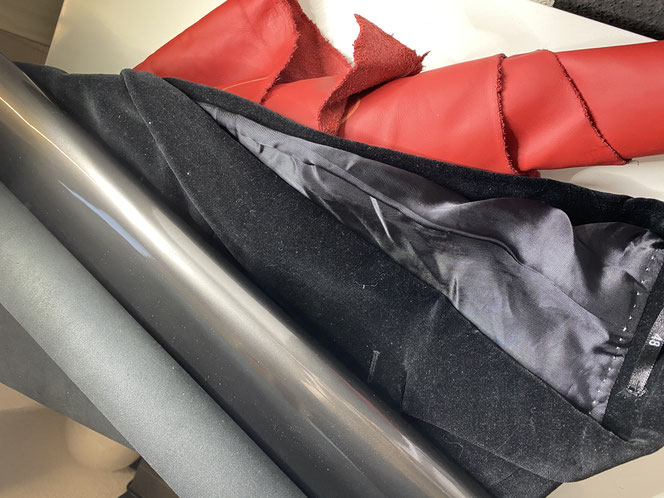 DIESE DAWIDA ENTSTAND AUS ECHTLEDER UND EINEM SAMTSAKKO FÜR DIE INNENAUSSTATTUNG.