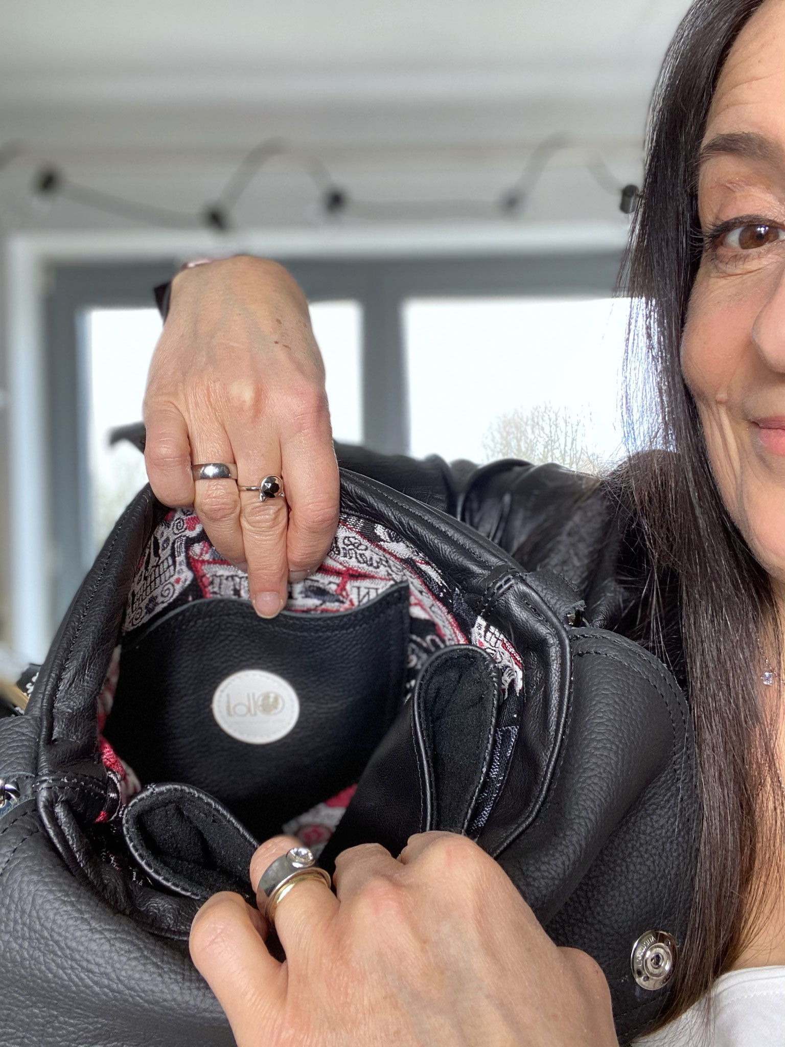 Ein Reissverschlussfach gibt es zusätzlich, ebenso ein D-Ring zur Anbringung eines Schlüssels per Karabiner.