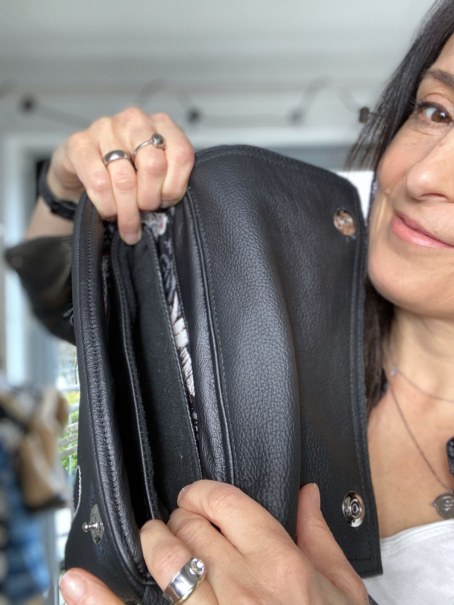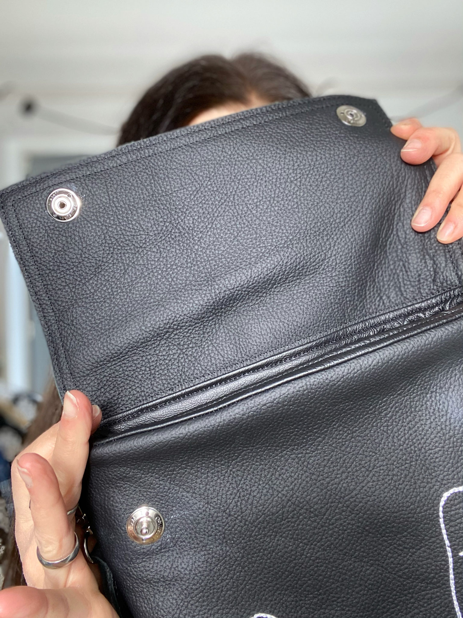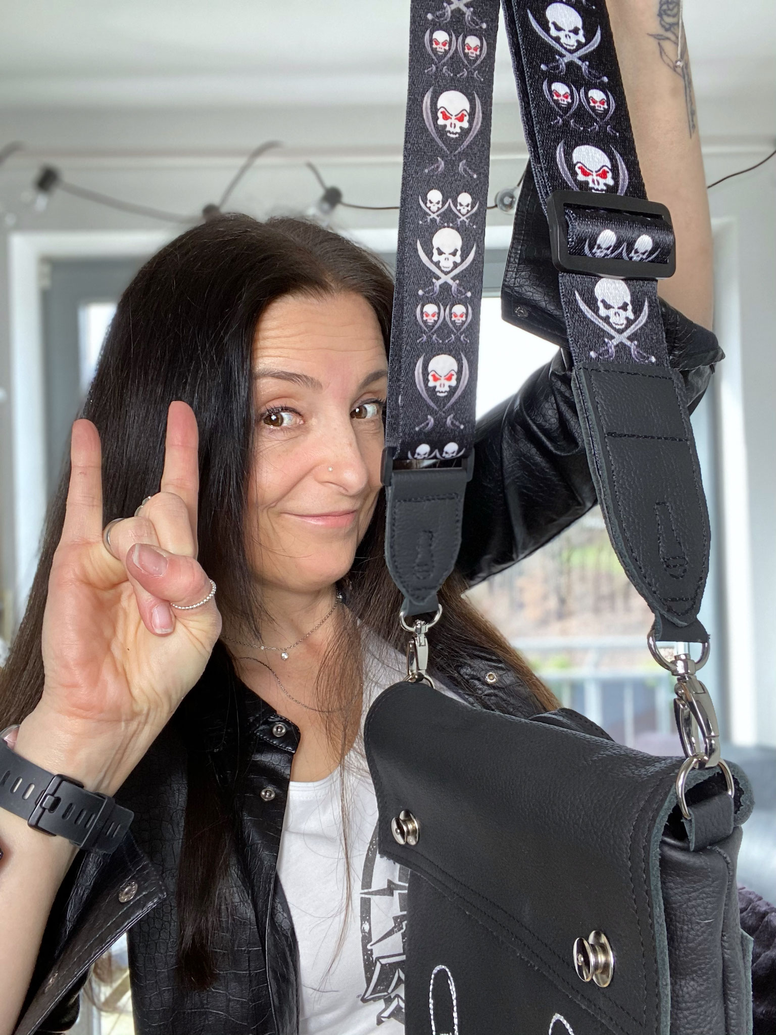 Der Gurt war ein Gitarrengurt und wurde mit Echtleder zu einem hochwertigen Taschengurt umgearbeitet.