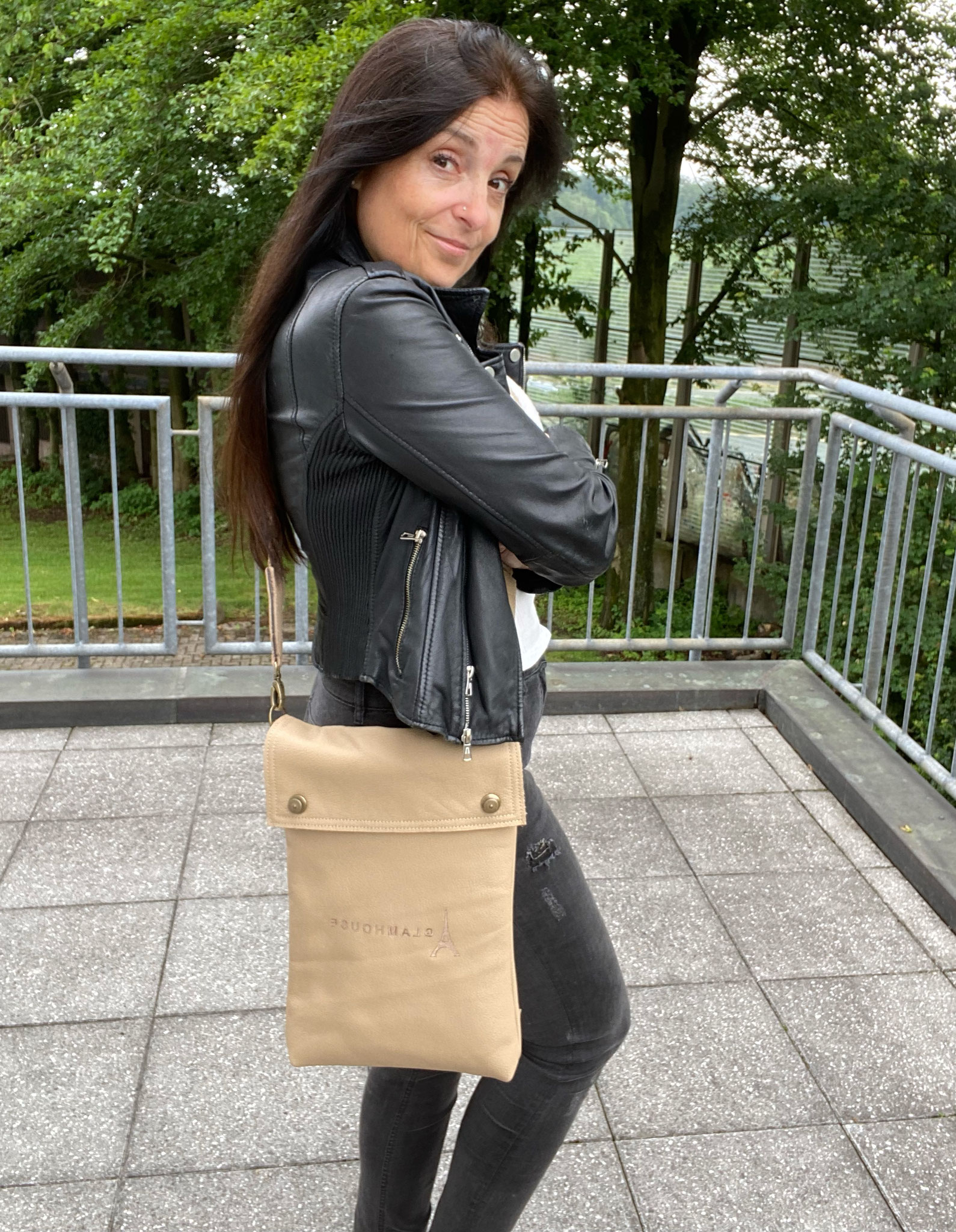 Der Gurt war ein Gitarrengurt und wurde mit Echtleder zu einem hochwertigen Taschengurt umgearbeitet.