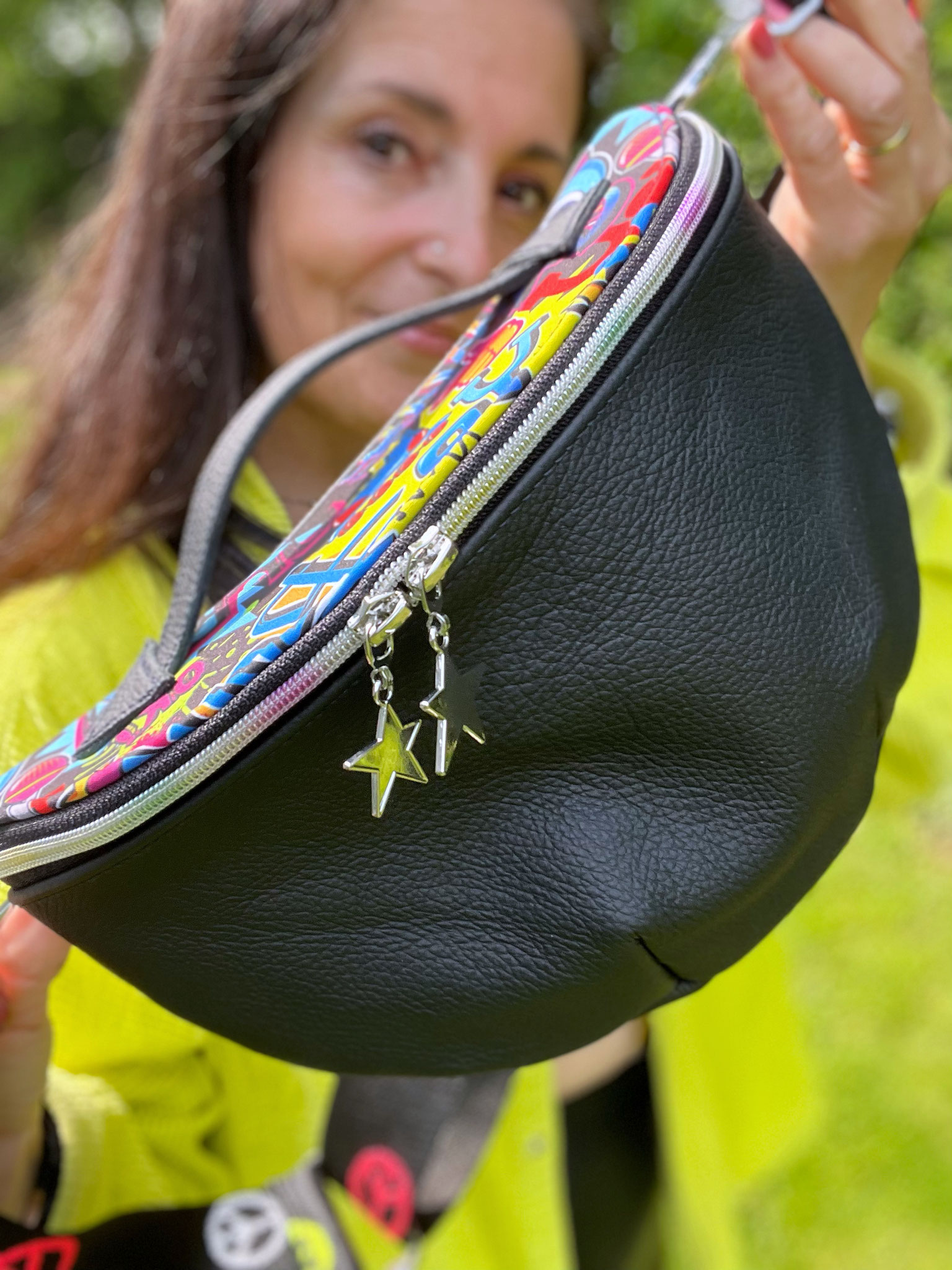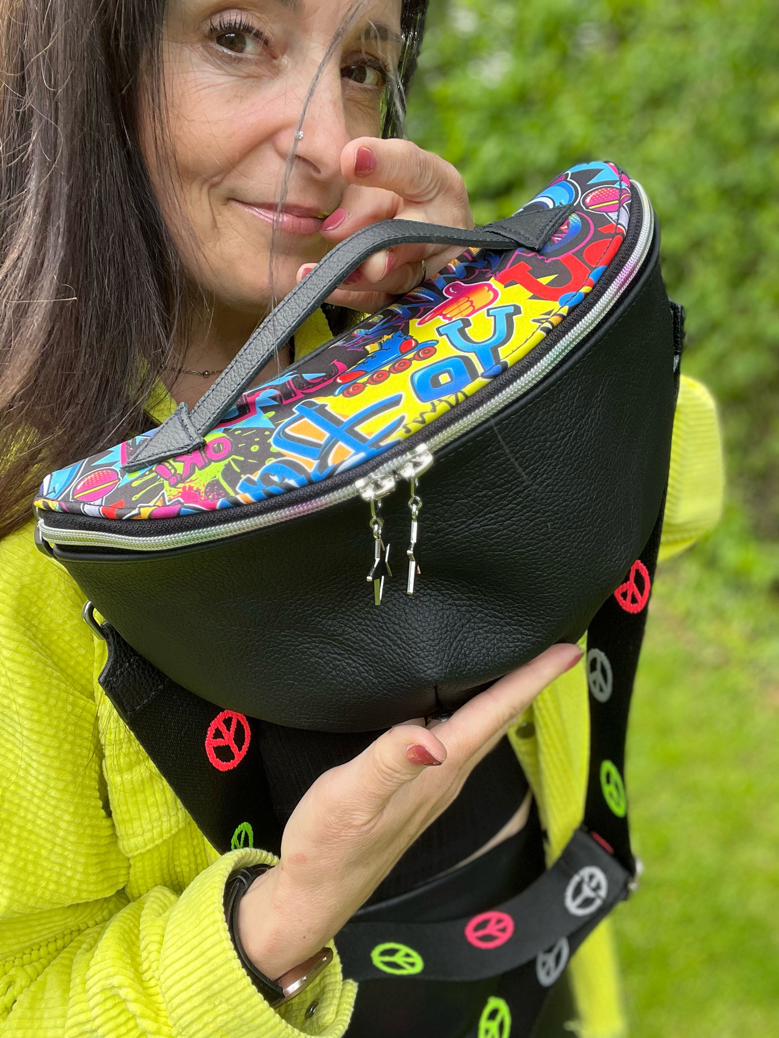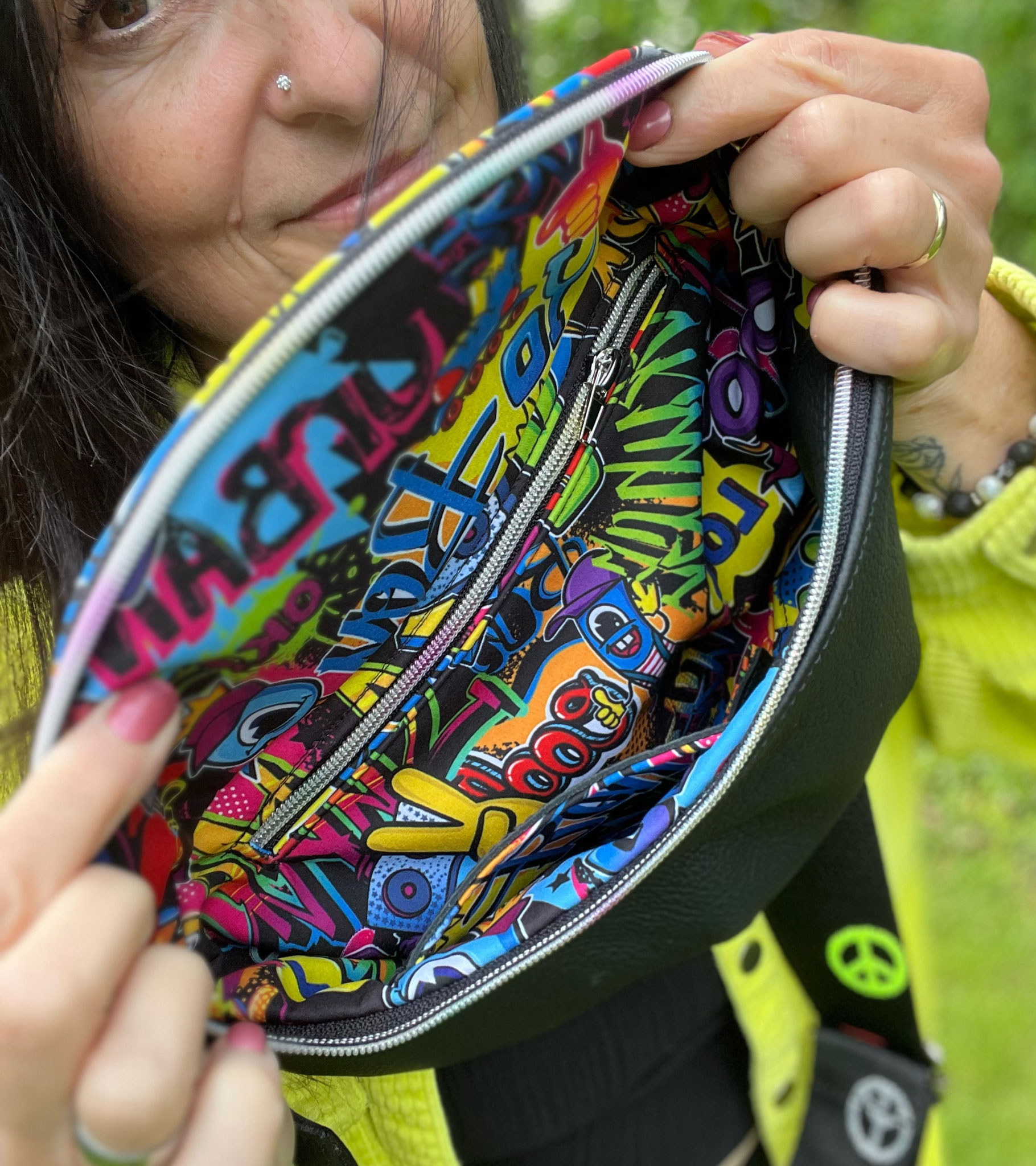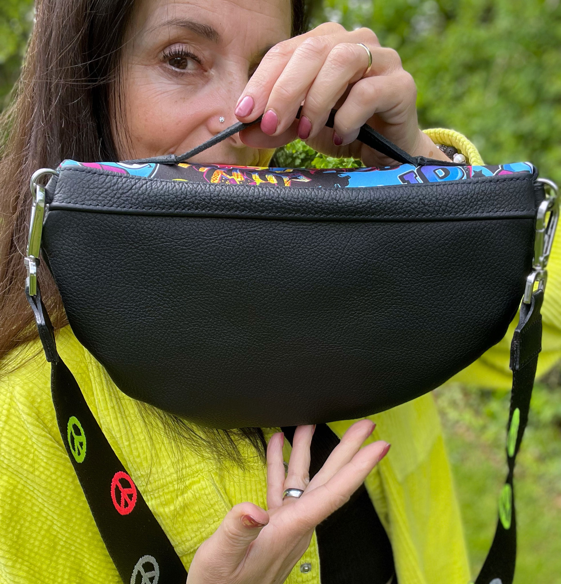 wurde aus Echtleder und einem Softshell material gefertigt.