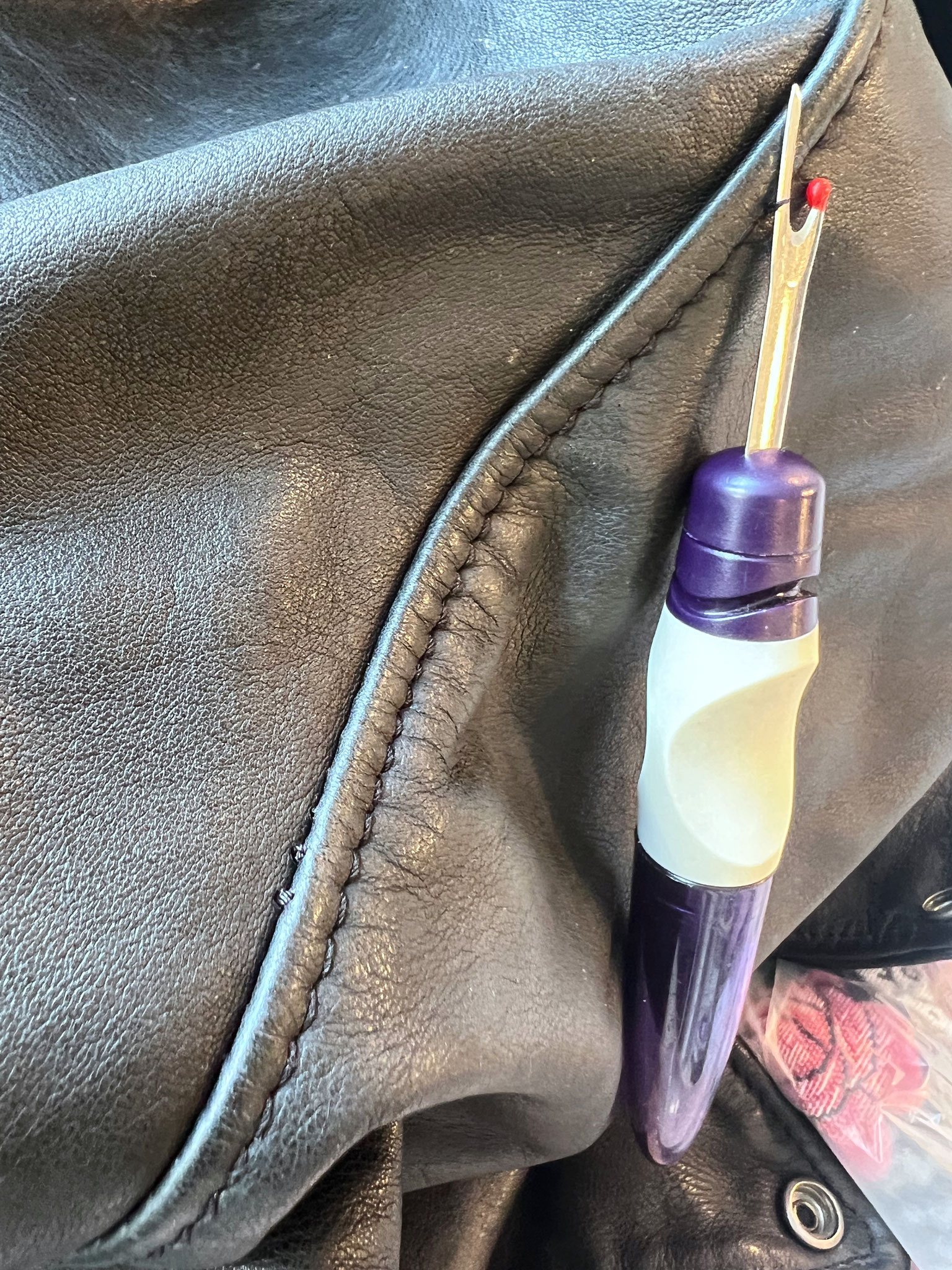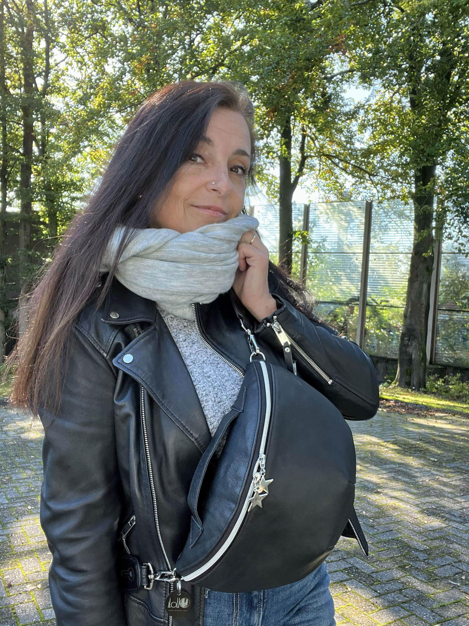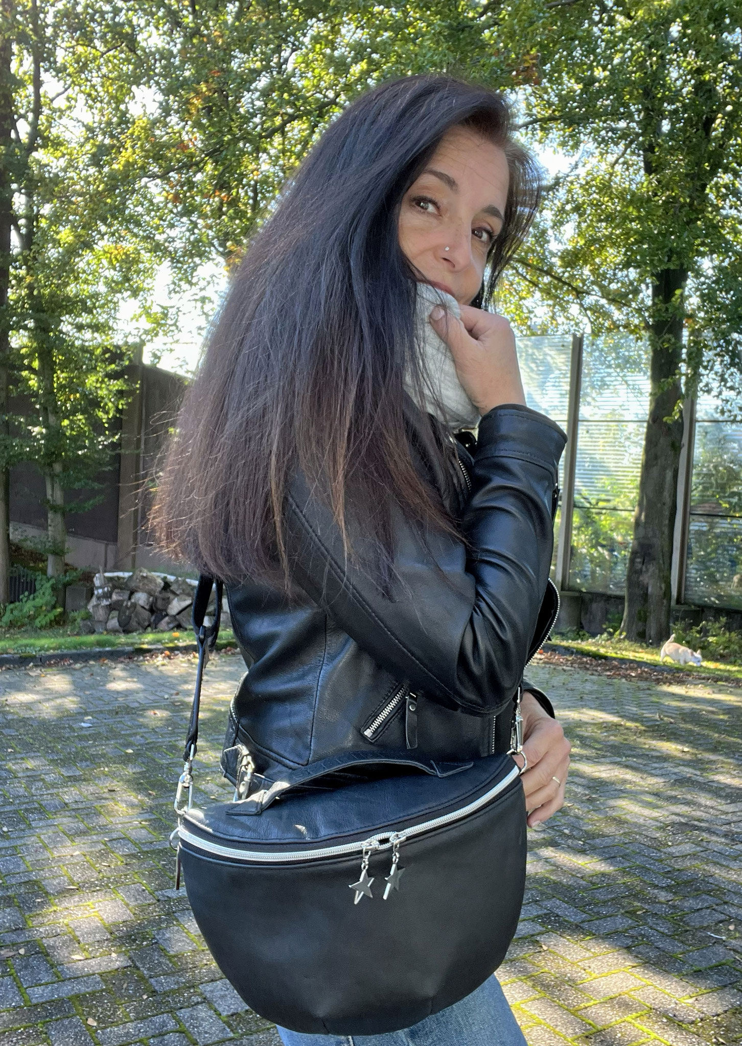 wurde aus einer Echtleder Motorradjacke gefertigt.