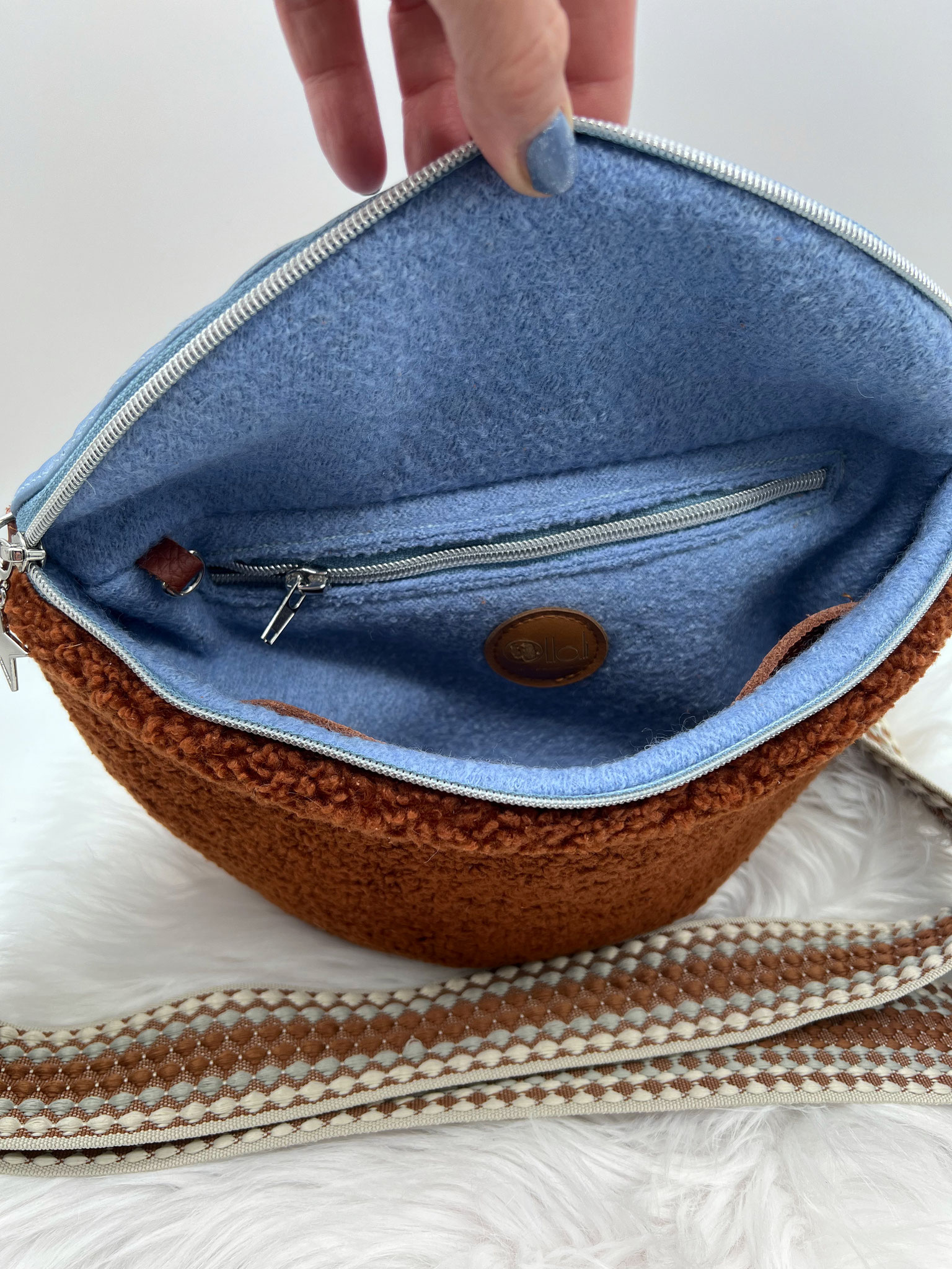 Im Innenraum habe ich einen Mantelstoff verwendet und die Farbe des Außenleders aufgegriffen.