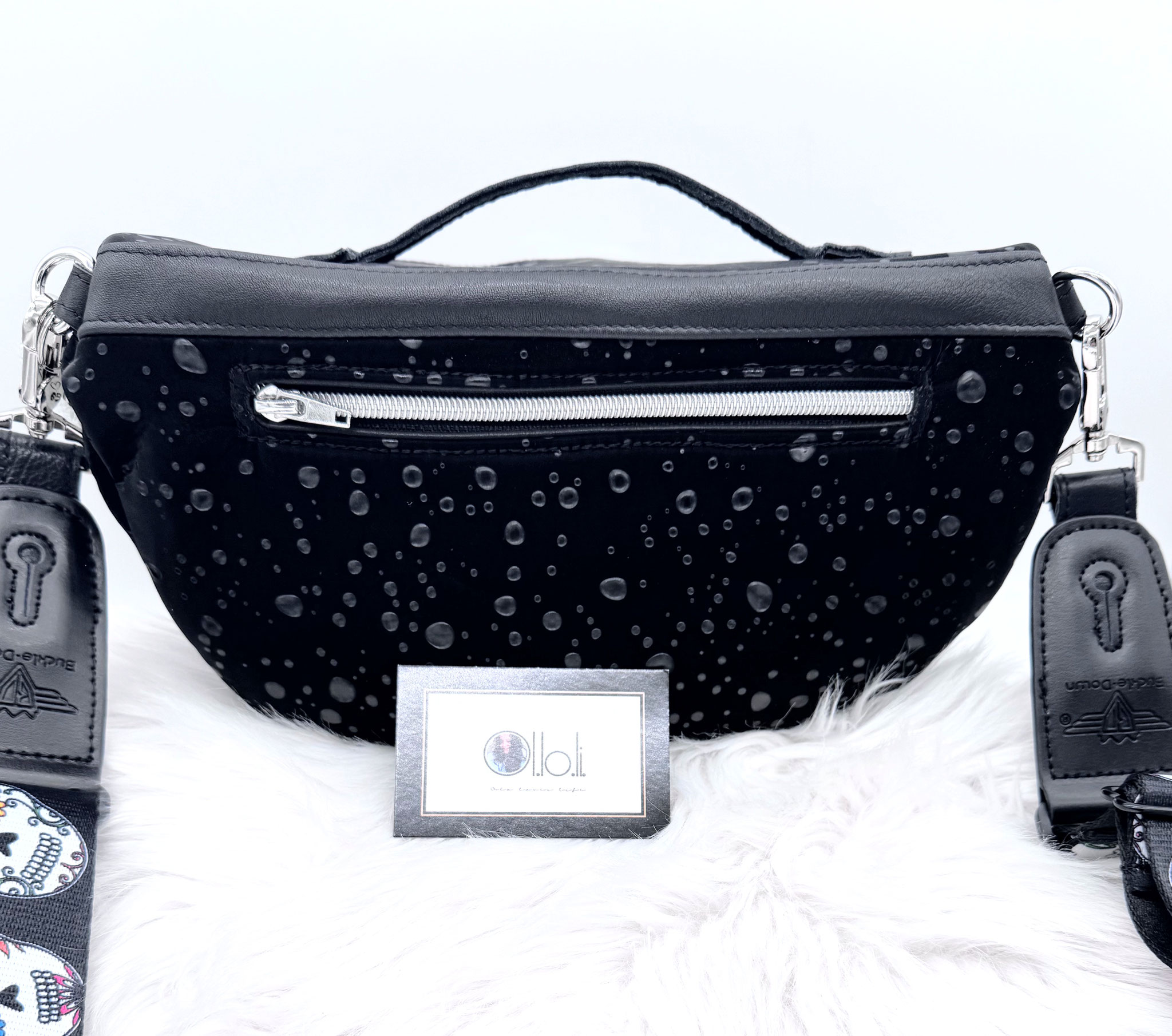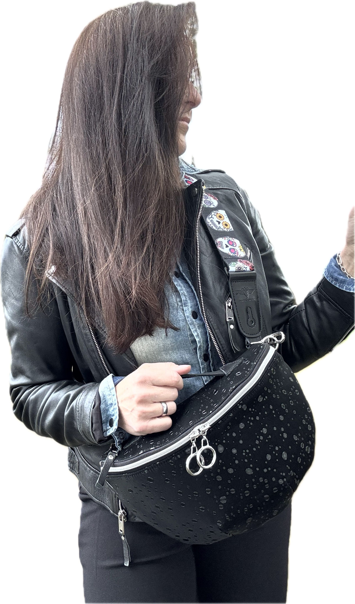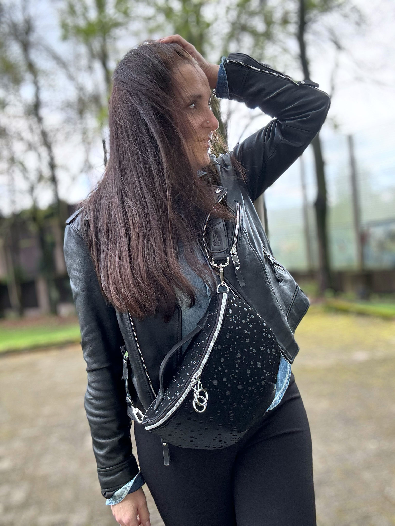 Joy No. 31 wurde im Außenbereich aus einem Softshell Material & Leder einer Lederjacke gefertigt.