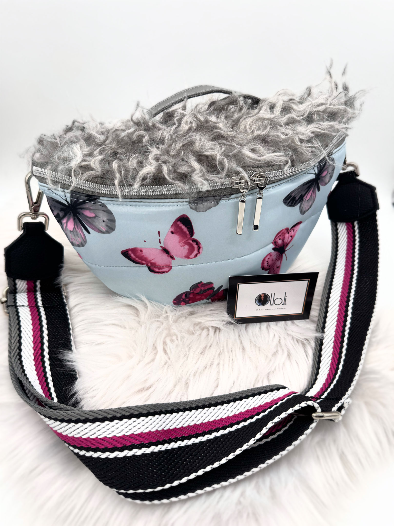 Joy No. 38 wurde im Außenbereich aus einem Softshell & Teddystoff & Lederresten gefertigt.