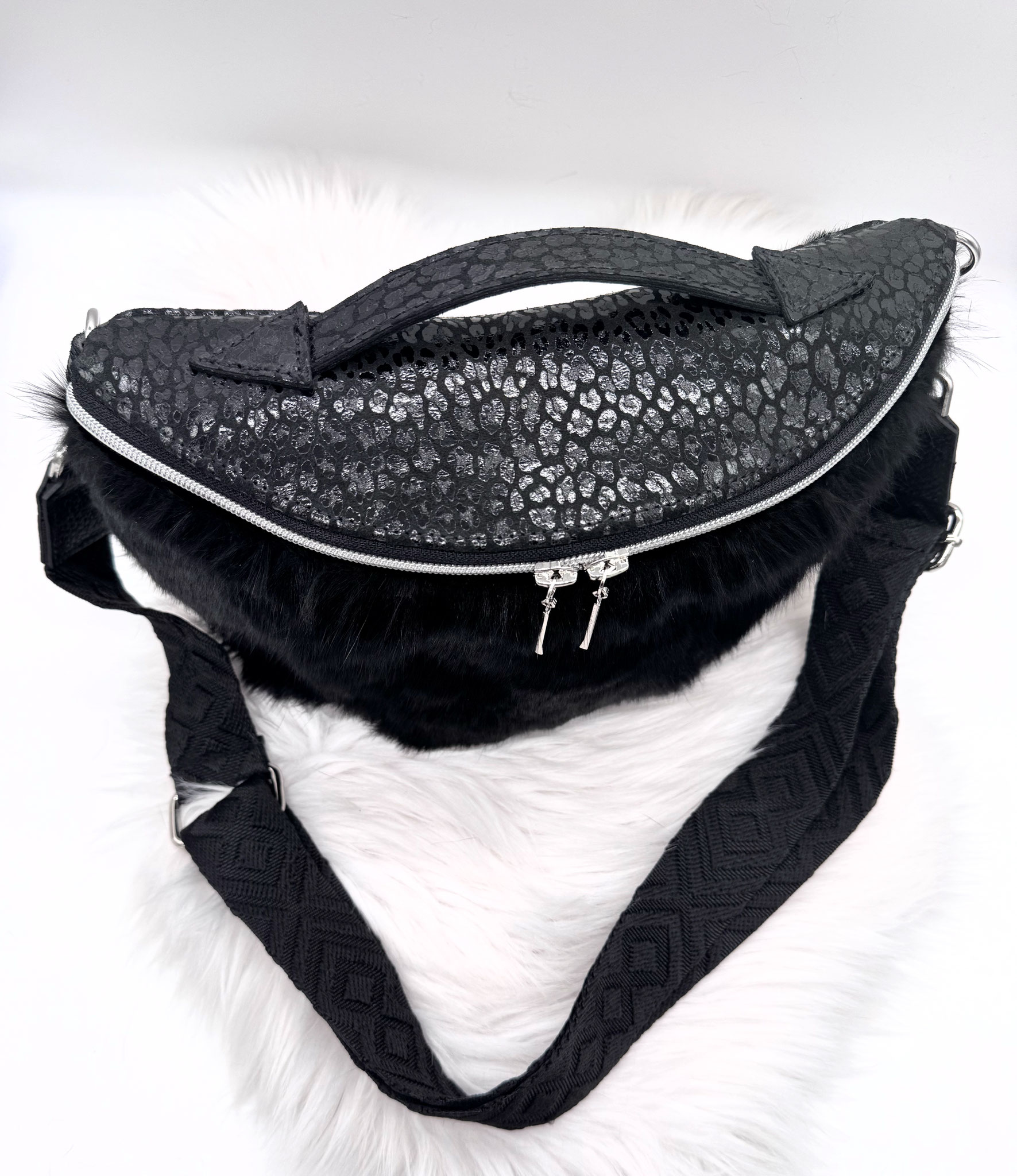 Joy No. 40 wurde im Außenbereich aus Echtleder im Leoprint & Pelz einer Pelzjacke ( Upcycling ) gefertigt.