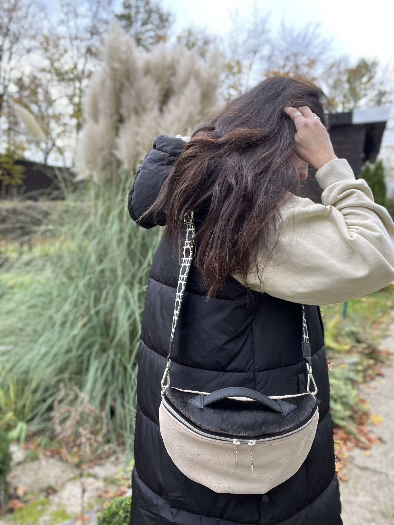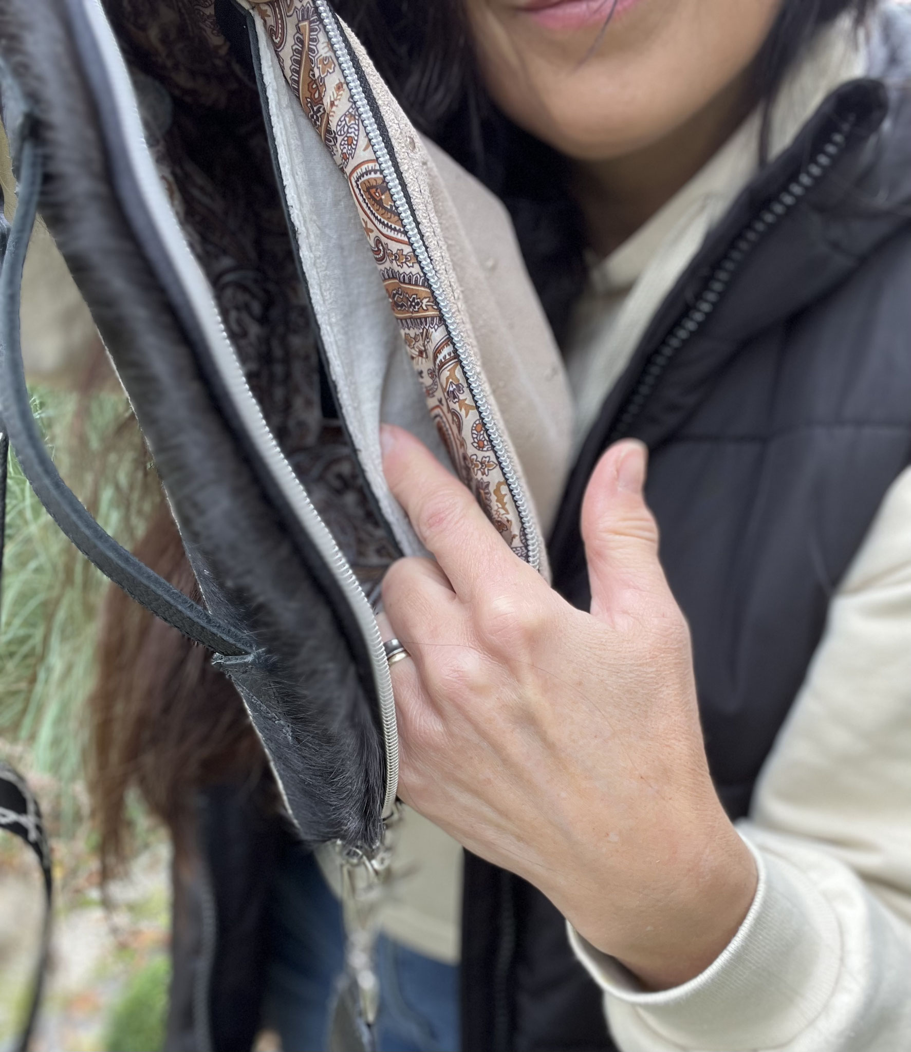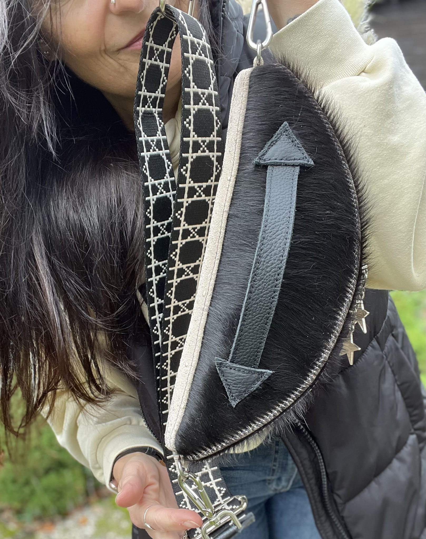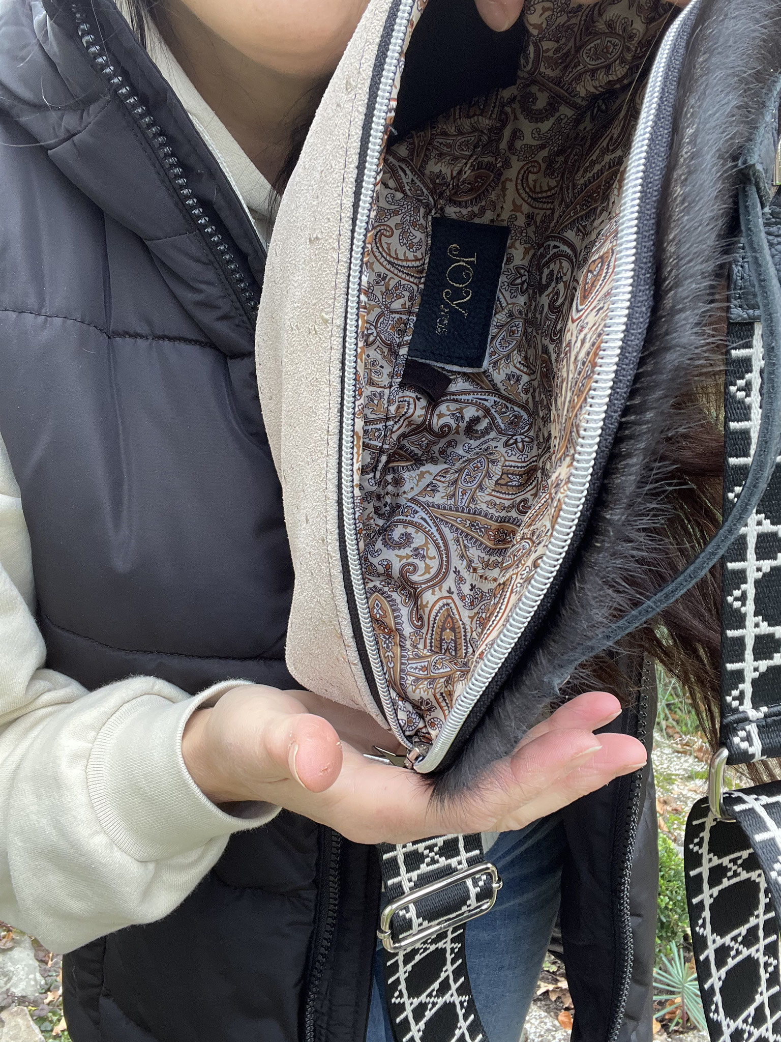 Der Taschendeckel wurde aus Kuhfell hergestellt.