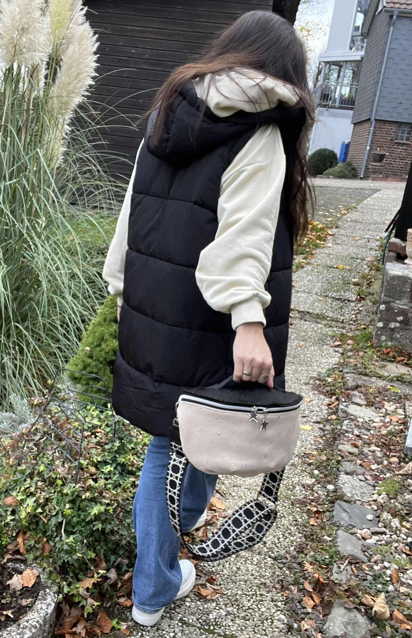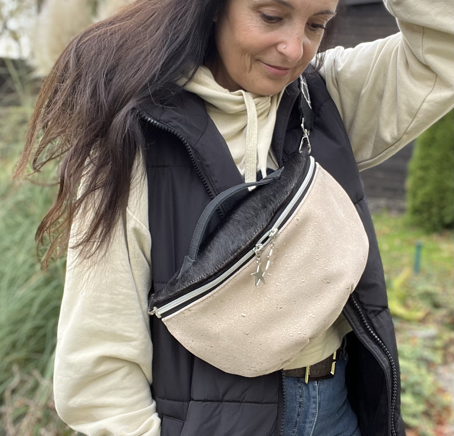 Für den Taschenkörper habe ich ein Velourleder mit Goldsprenkeln verwendet.