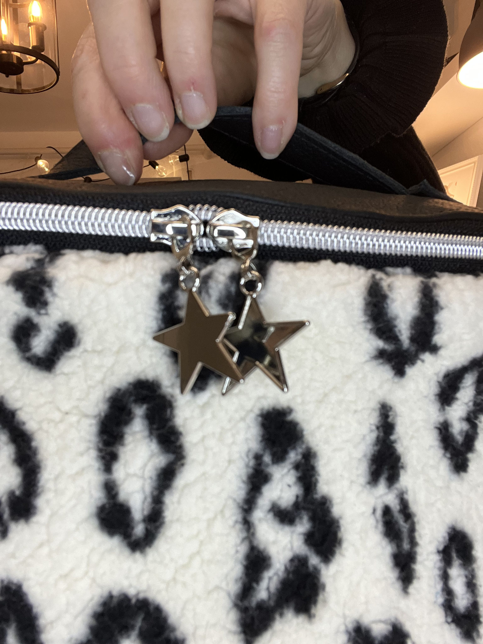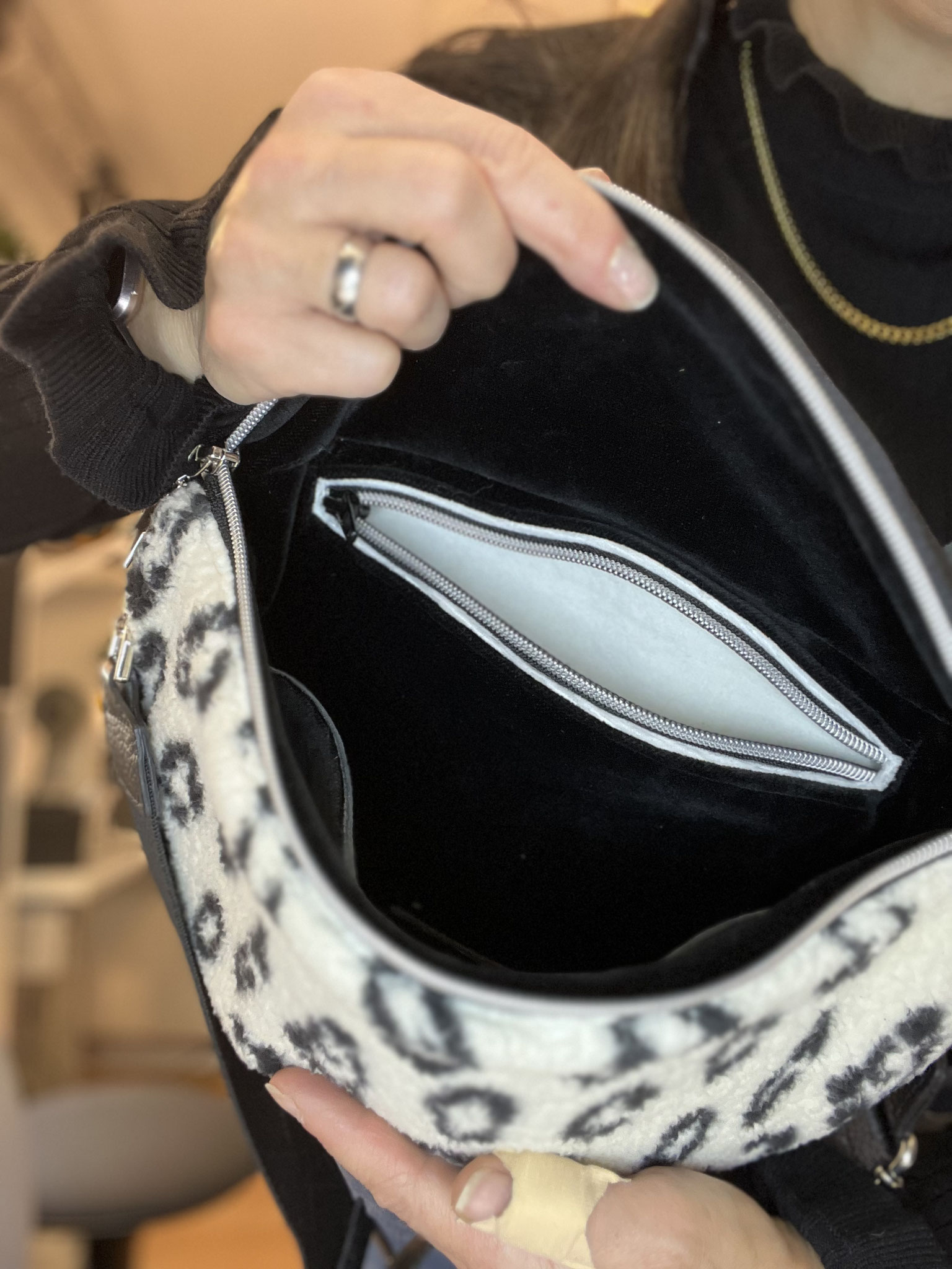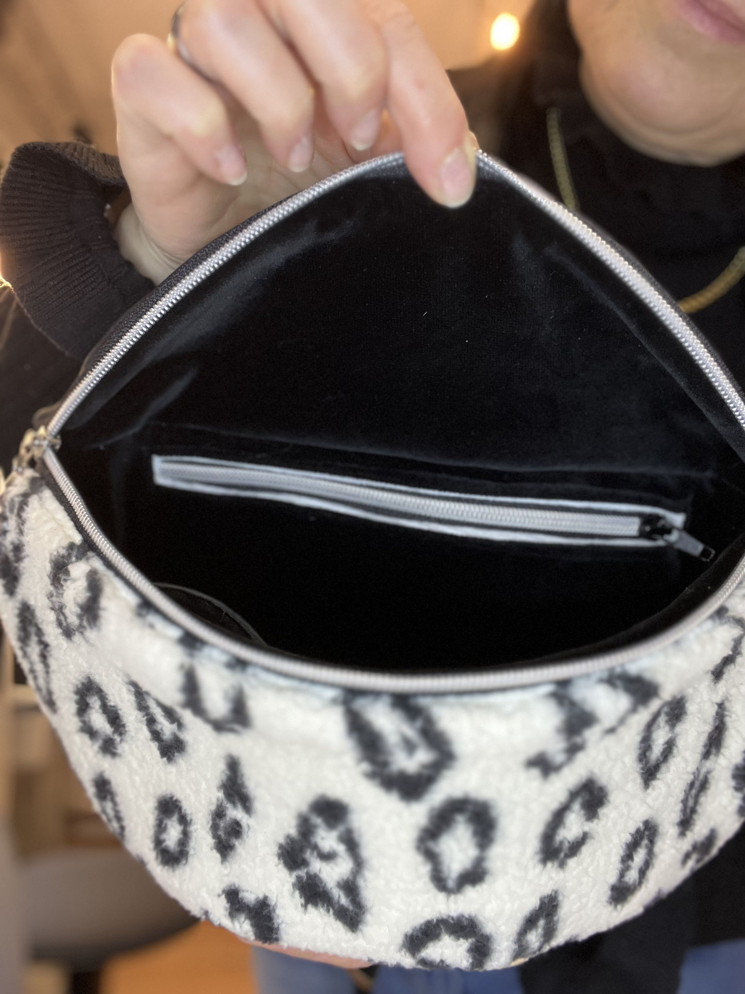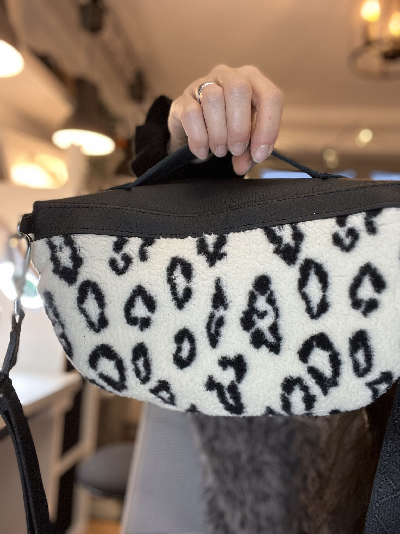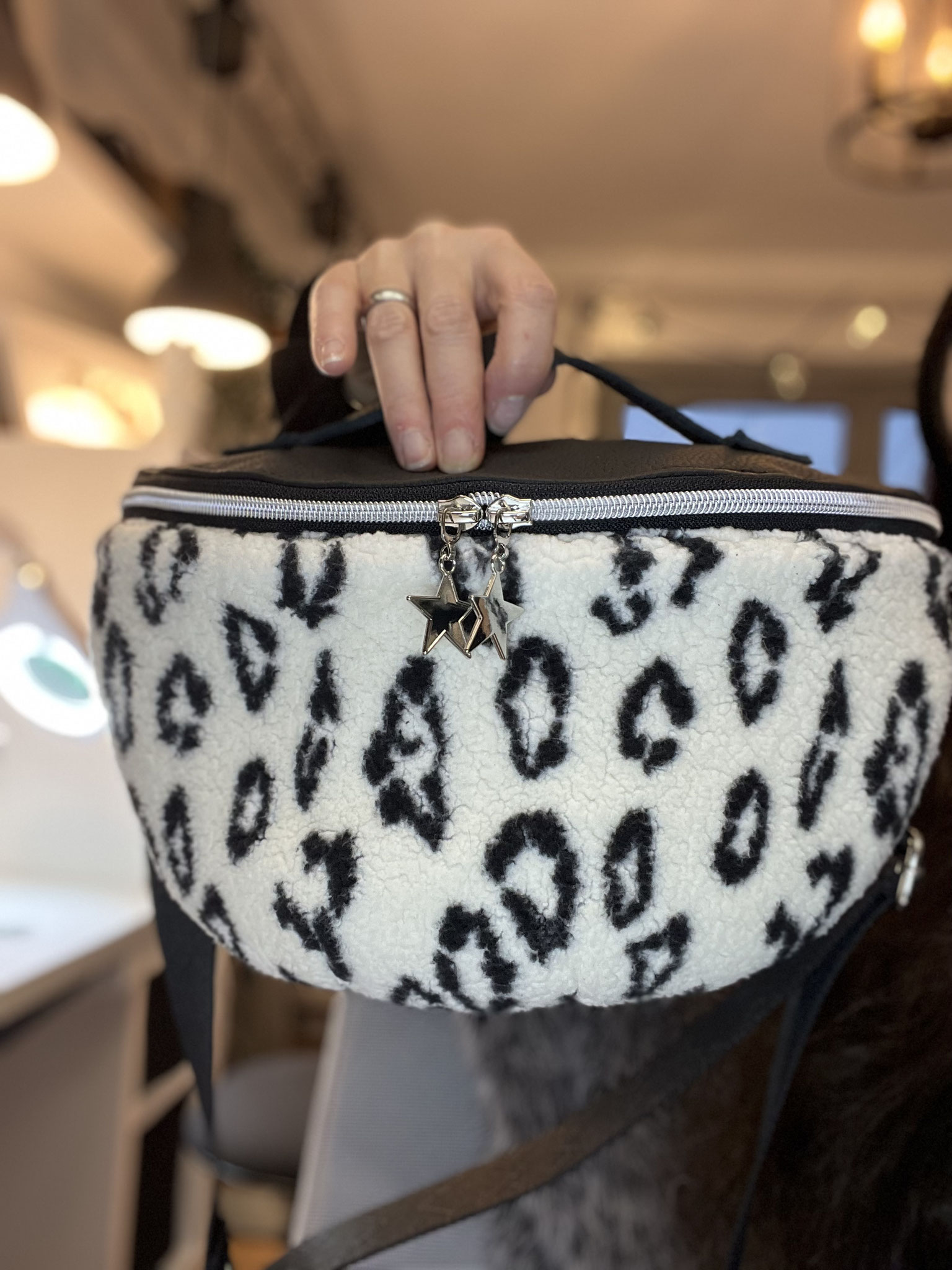 wurde aus einem tollen Kunstfell ( Sherpa ) im Leoprint gefertigt .