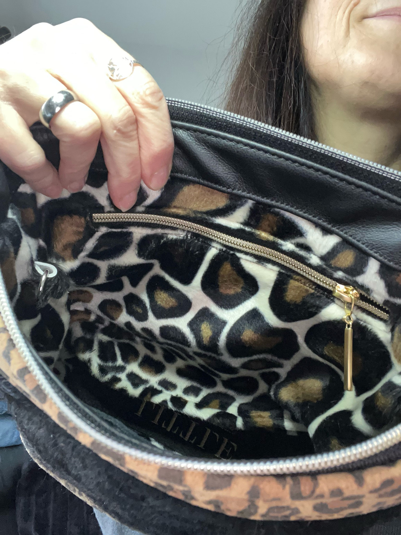verfügt im Innenraum über ein Handy / Einsteckfach, ein Reißverschlussfach und 2 Ringe zum Anbringen eines oder mehrerer Schlüssel 🔑 mit Karabiner.