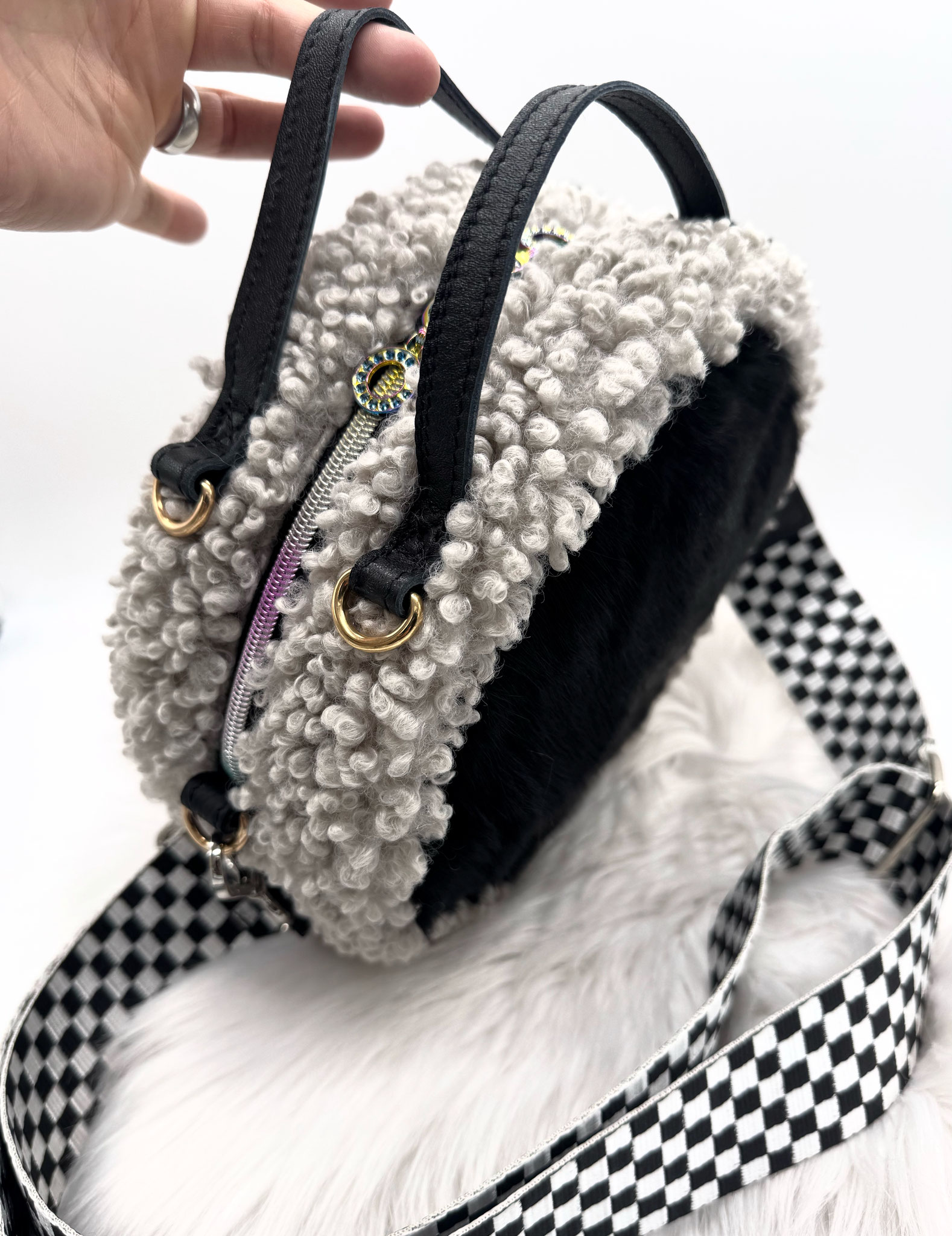 wurde aus einer Lederjacke & Sherpa & Kuhfell gefertigt.