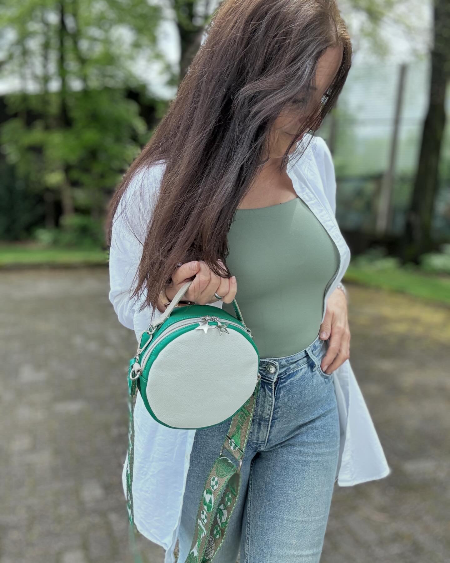wurde aus einer Leder (Außenbereich) & Stoff (Innenbereich) gefertigt.