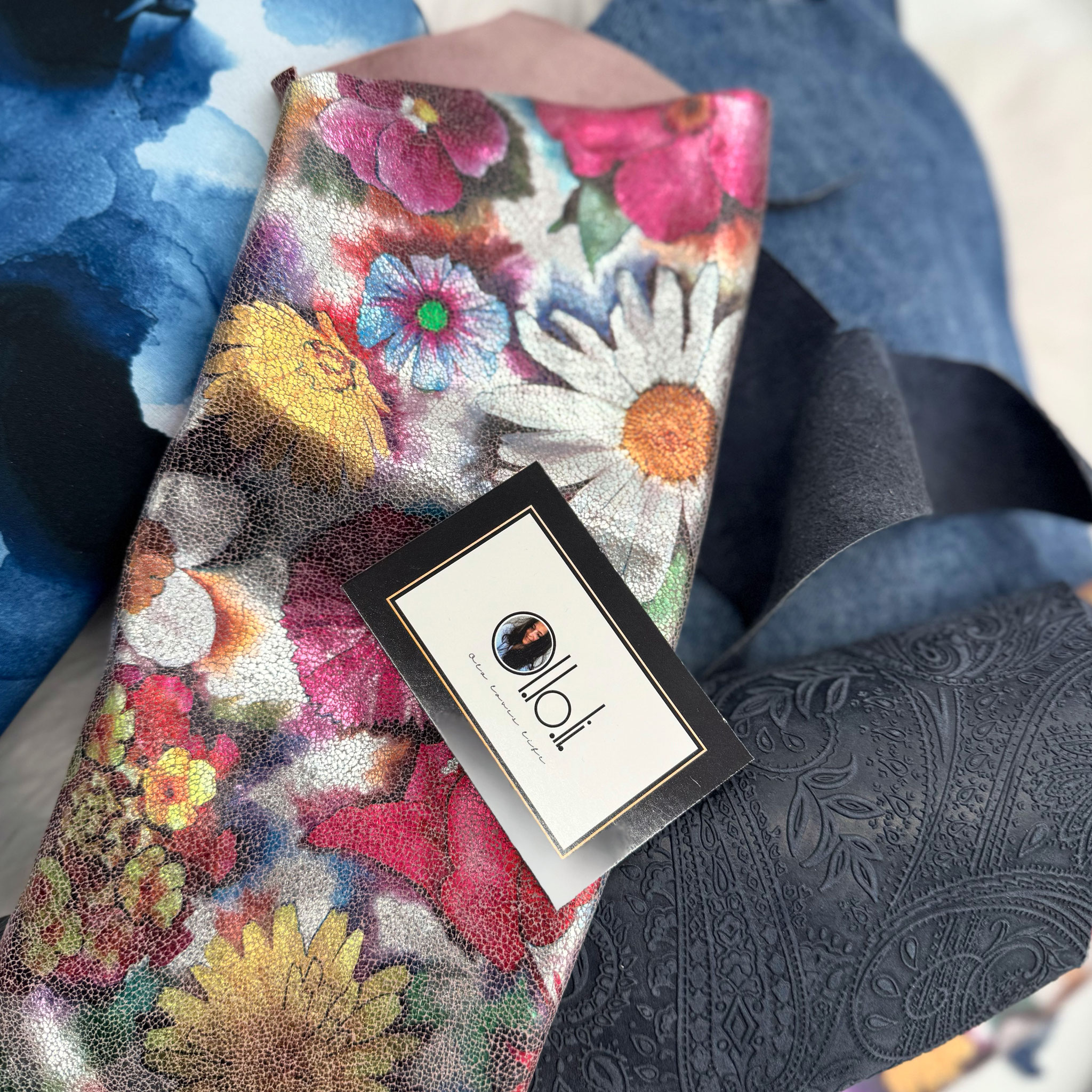 Jeans (Jeanshose) & Leder (Blumenprint) & Lederresten & Softshell